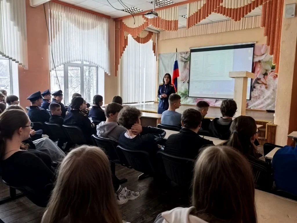 Помощник руководителя следственного управления Анастасия Дуничева и старший помощник руководителя следственного управления Александр Коргин провели профилактические занятия с обучающимися и кадетами в МБОУ «Стрелецкая СОШ» и МБОУ «Образцовская СОШ» Орловского муниципального округа .