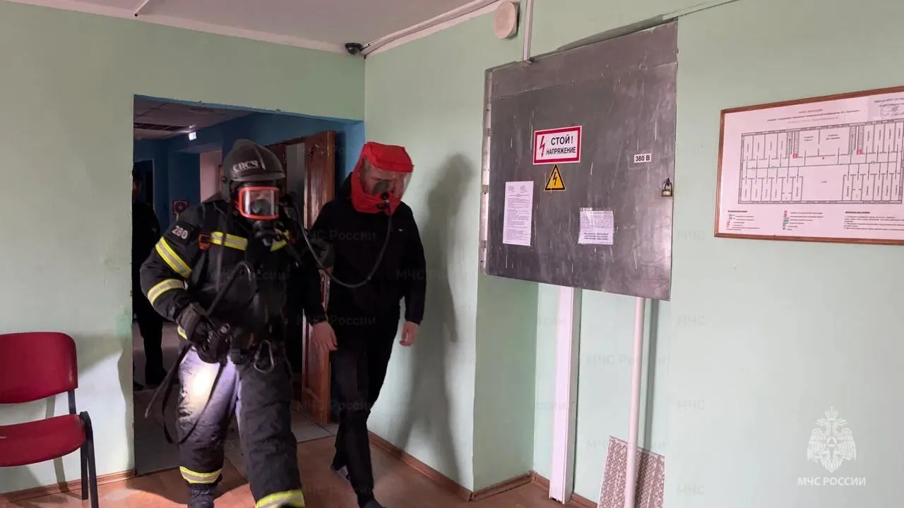 По замыслу учения, в результате короткого замыкания на втором этаже в одном из помещений общежития техникума произошло возгорание мебели и предметов интерьера. Огнеборцы: