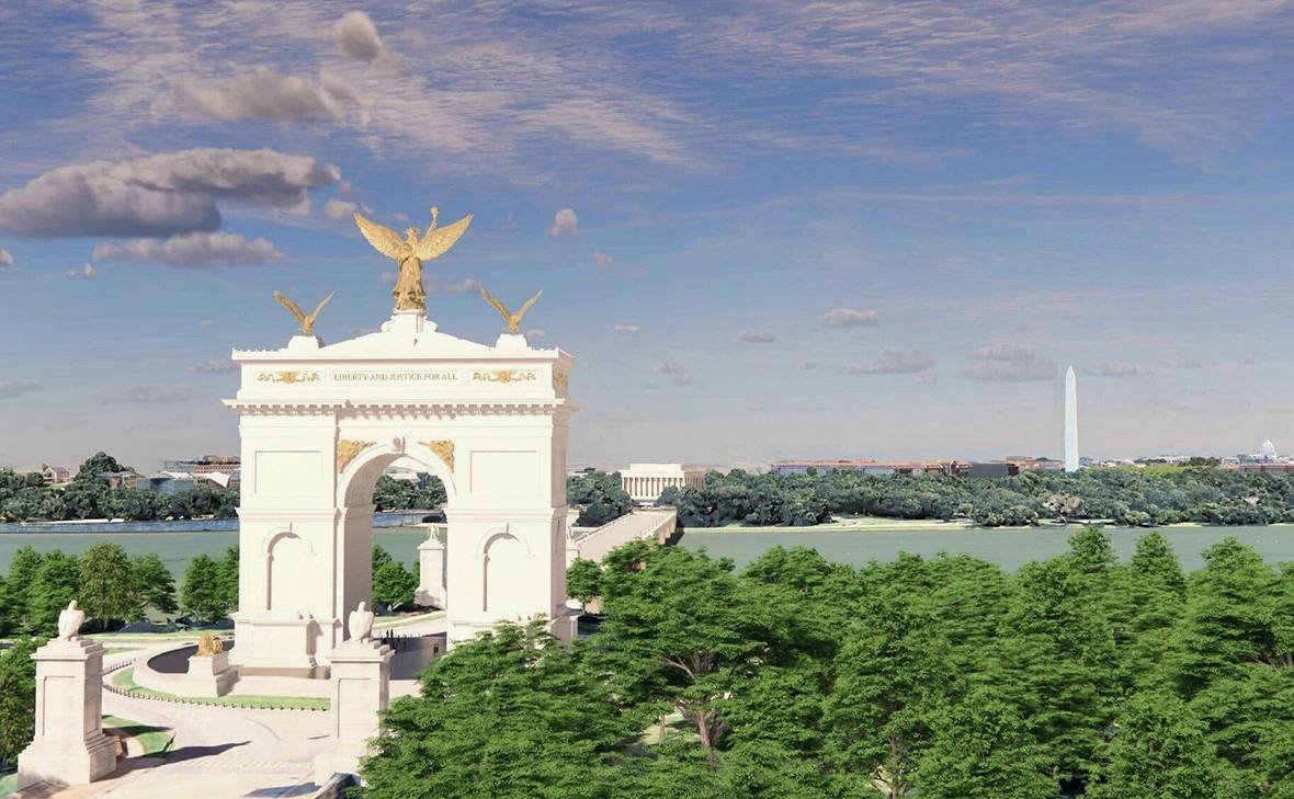 Администрация Трампа представила Комиссии по изящным искусствам проект 76-метровой триумфальной арки, которая должна появиться на мемориальной развязке у Арлингтонского мемориального моста. Об этом сообщает The New York Times.