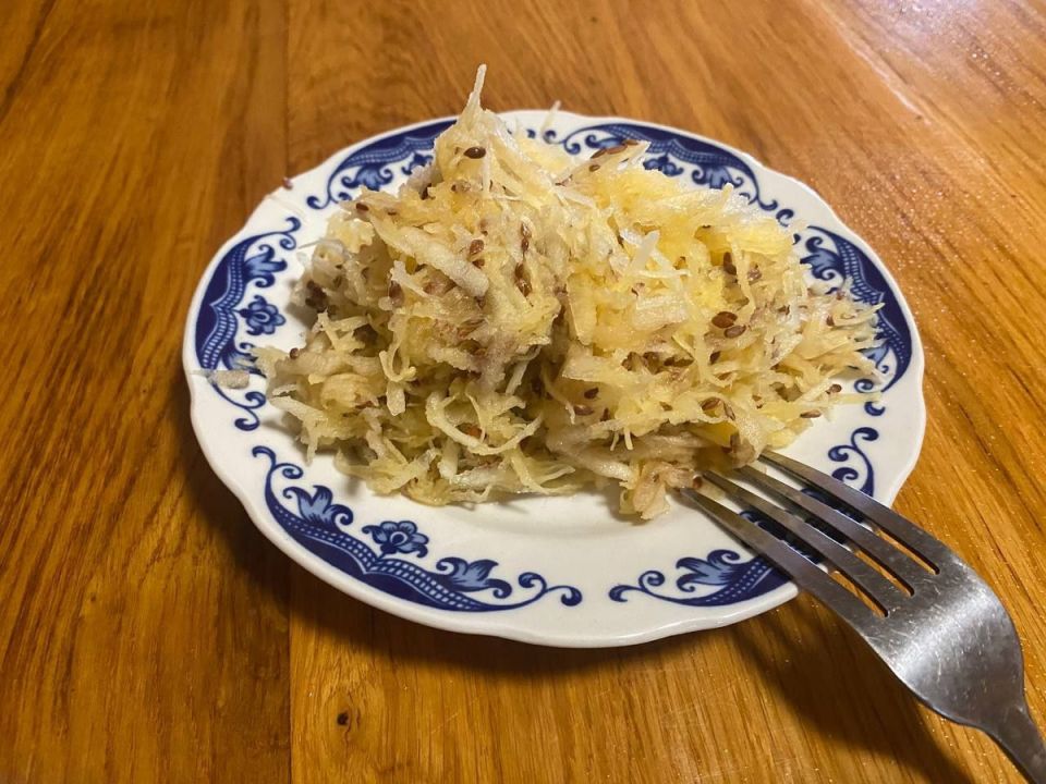 - Кислое яблоко, по размеру сопоставимое с брюквой