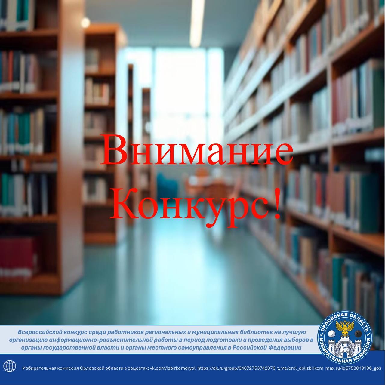 18 марта 2026 года стартовал Всероссийский конкурс среди работников региональных и муниципальных библиотек на лучшую организацию информационно-разъяснительной работы в период подготовки и проведения выборов в органы государственной власти и органы местного самоуправления в Российской Федерации. Конкурс проводится по инициативе ЦИК России.