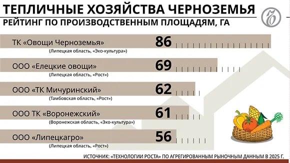 Крупнейшие производители тепличных овощей в Черноземье испытывают финансовые вызовы по итогам 2025 года. Почти все «дочки» ГК «Рост» (лидер в макрорегионе по выращиванию огурцов) в Липецкой, Тамбовской и Орловской областях существенно сократили прибыль.