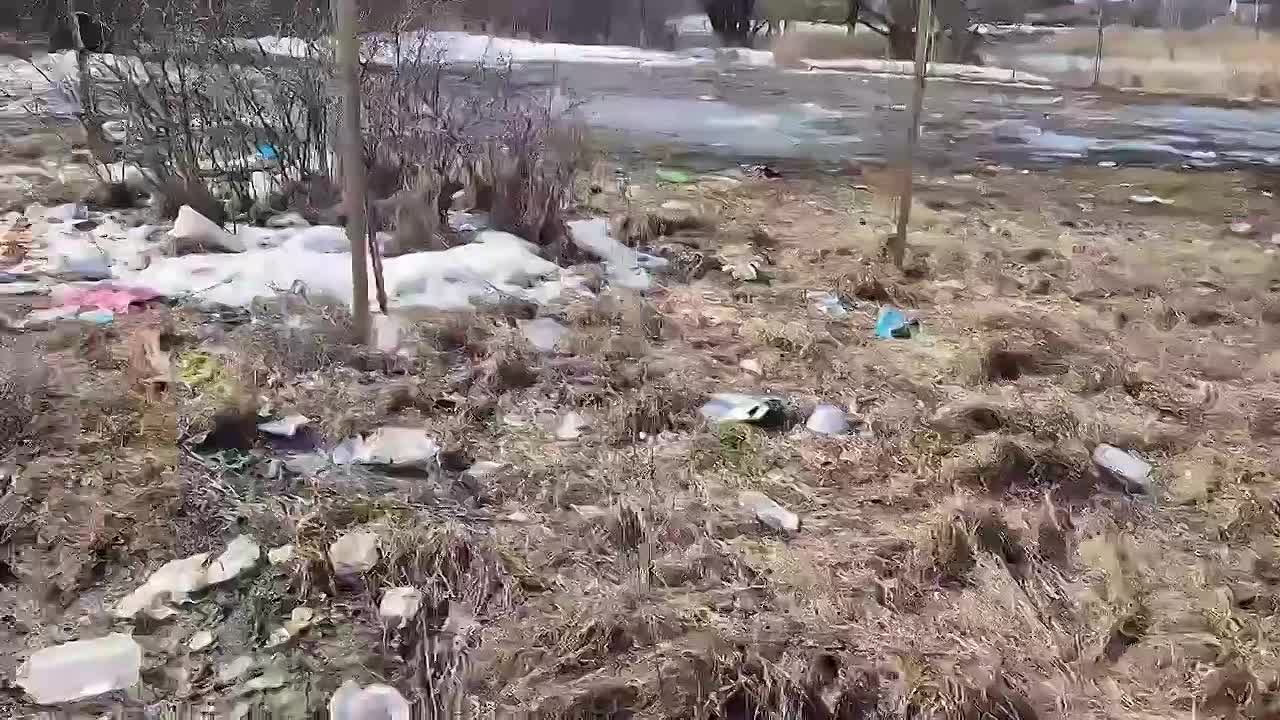 "Озеро светлая жизнь. Эта помойка там всю зиму была и сейчас это всё потекло, воняет и разнеслось по всей территории... ",