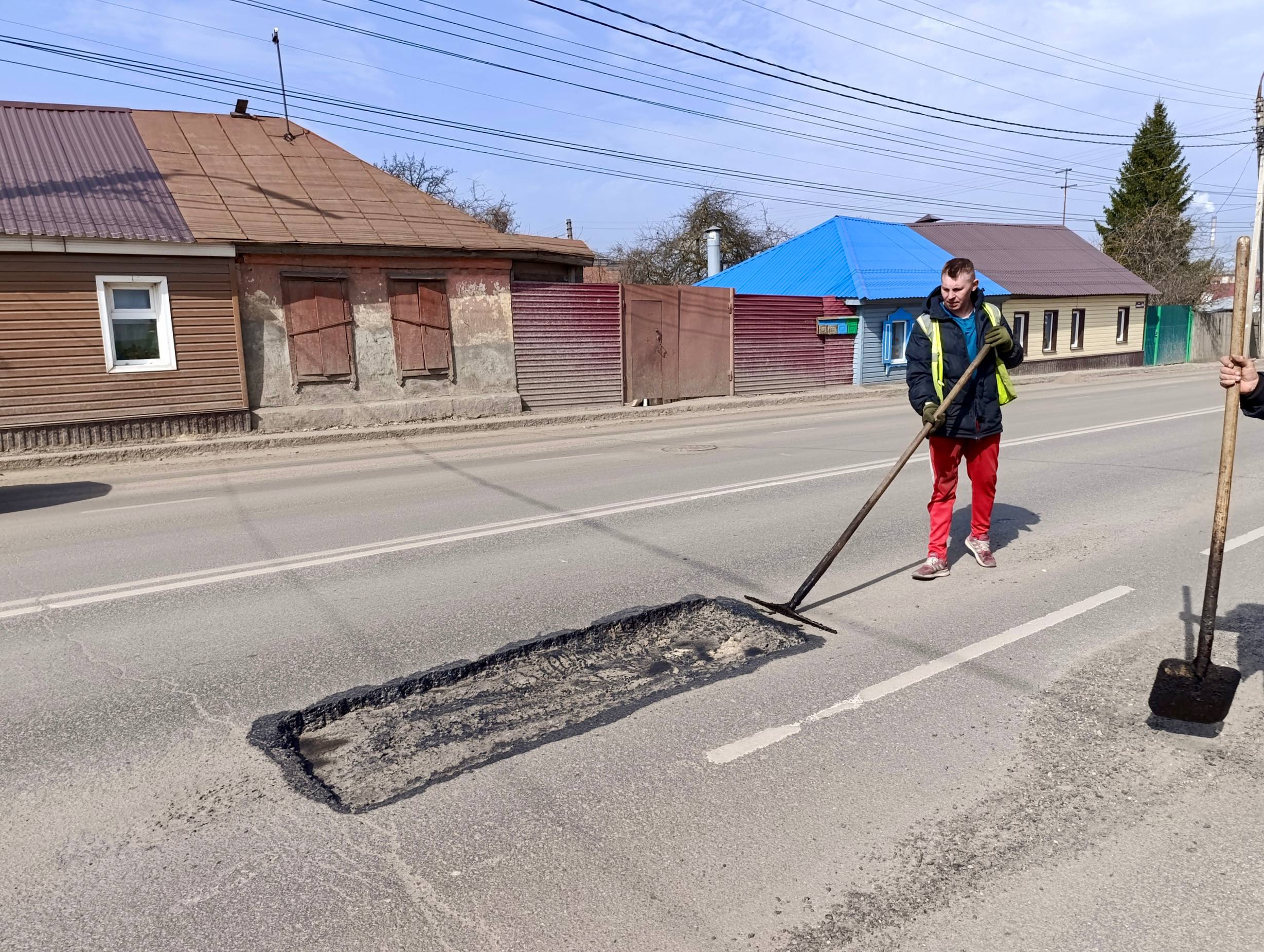 Специалисты МБУ «Спецавтобаза» продолжают восстановление дорожного покрытия после зимнего периода.