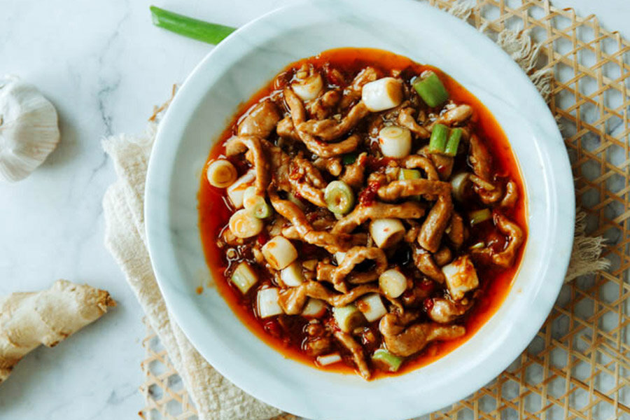 Свинину нарезать полосками толщиной 4-5 мм. Перемешать с ингредиентами для маринада, кроме кукурузного крахмала, имбиря и зеленого лука. Оставить мариноваться на 15-20 минут. Зеленый лук и имбирь залить двумя столовыми ложками теплой воды, затем соединить с мясом.Смешать 1 ст.л крахмала с 1 ст.л воды и добавить к свинине, тщательно перемешать.В отдельной миске смешать состав для соуса.Перед обжариванием добавить к свинине 1 ст.л растительного масла.Разогреть сковороду, добавить 1 ст.л масла и осторожно положить кусочки свинины. Обжаривать 2-3 секунды, часто перемешивая. Как только мясо поменяет цвет, переложить на тарелку.В сковороду положить пасту доубаньцзян и квашеные перцы, обжарить на малом огне около 10 секунд, чтобы масло окрасилось. Затем добавить чеснок и имбирь, жарить до появления аромата.Вернуть свинину обратно в сковороду. Перемешать соус и вылить его в сковороду, довести до кипения. В конце добавить нарезанный зеленый лук, тщательно перемешать и снять с огня.Приятного аппетита!
