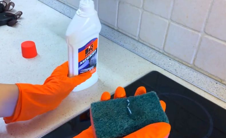 - Удалить средство влажной салфеткой и воспользоваться металлической губкой для финальной очистки.