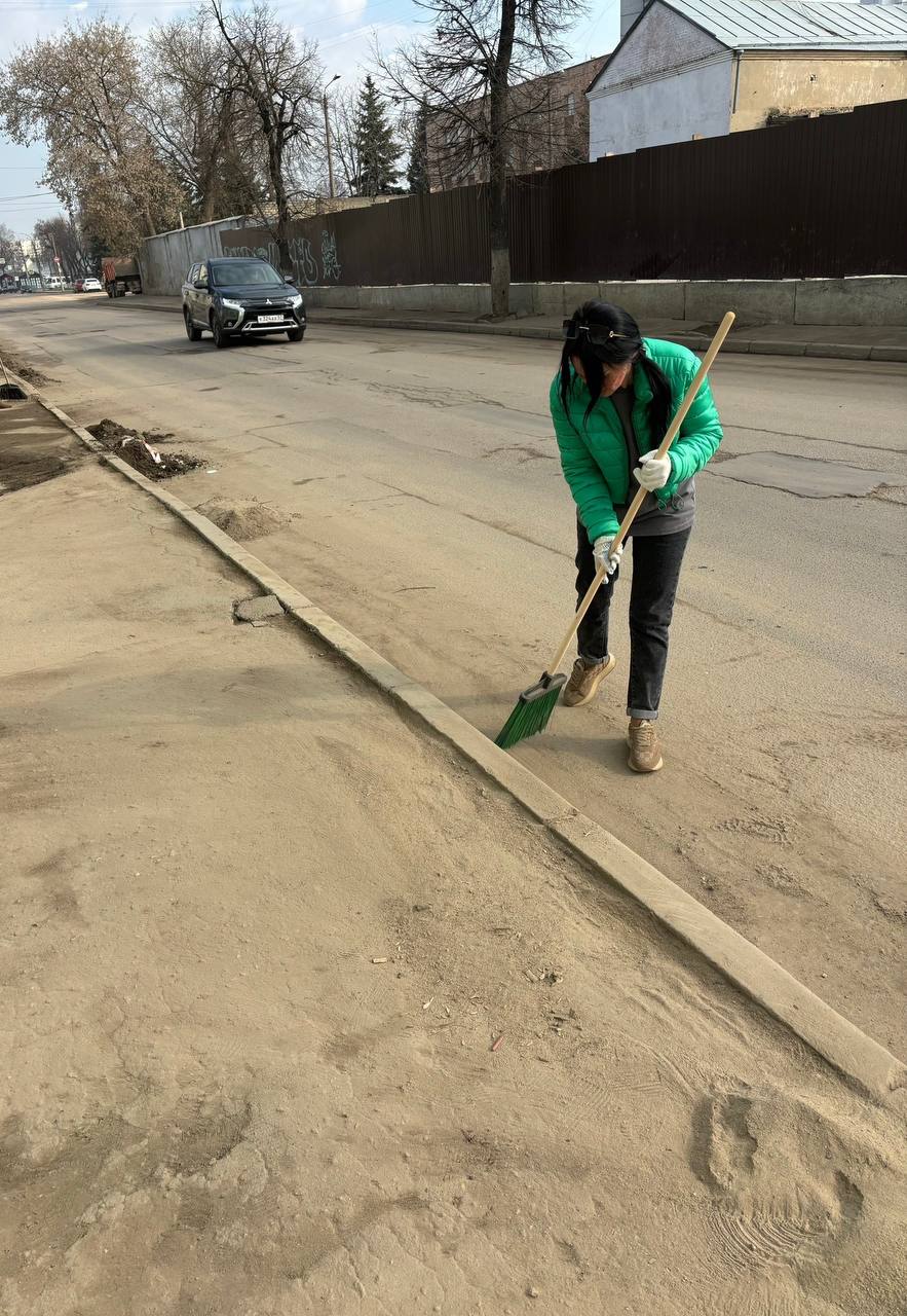 В Советском районе на улице Полесской всего за несколько часов территория заметно преобразилась. Участники вручную собрали накопившийся за зиму бытовой мусор и убрали остатки прошлогодней листвы.