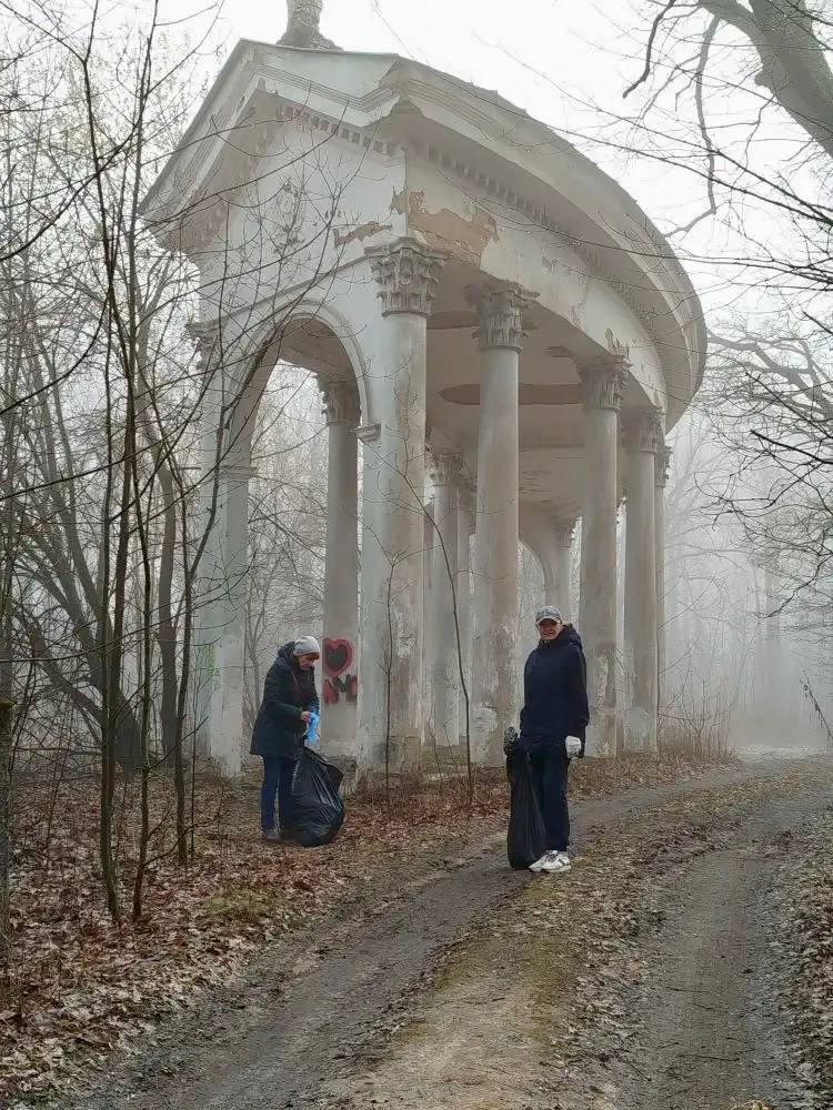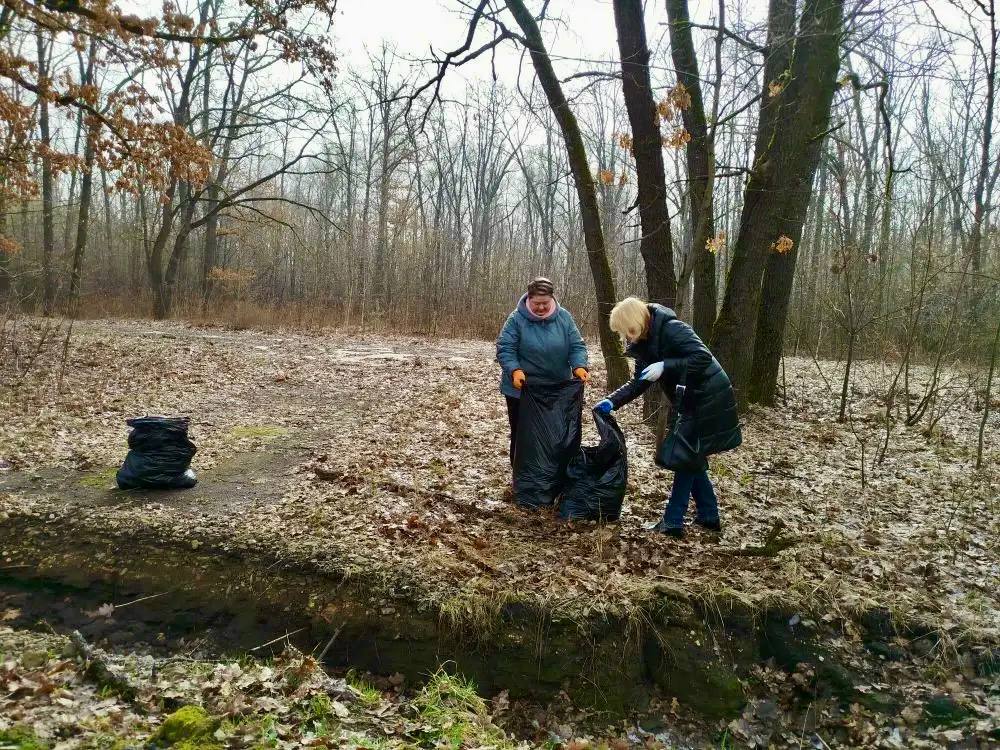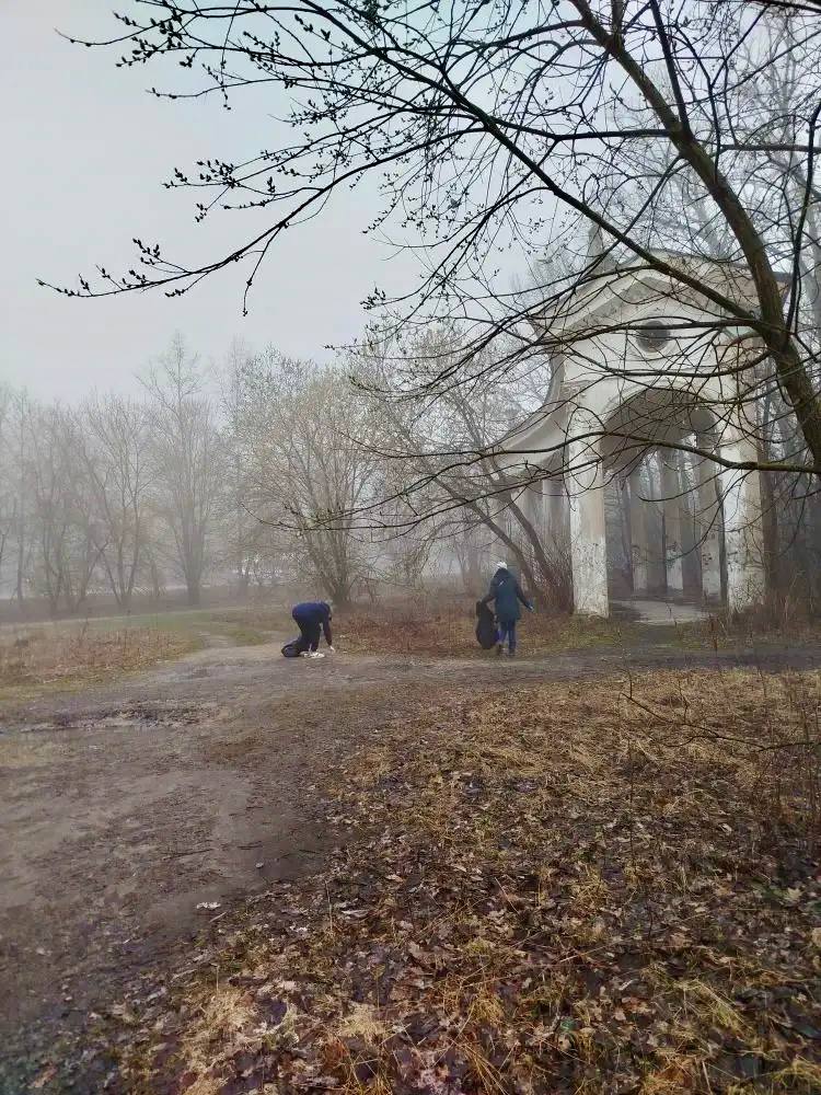 Здесь участники экологических отрядов убрали накопившийся мусор и прошлогоднюю листву.