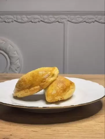 После сборки их следует смазать желтком и слегка посыпать сахаром. Выпекать рекомендуется при температуре 200°C от 15 до 25 минут, пока пирожки не станут золотистыми.