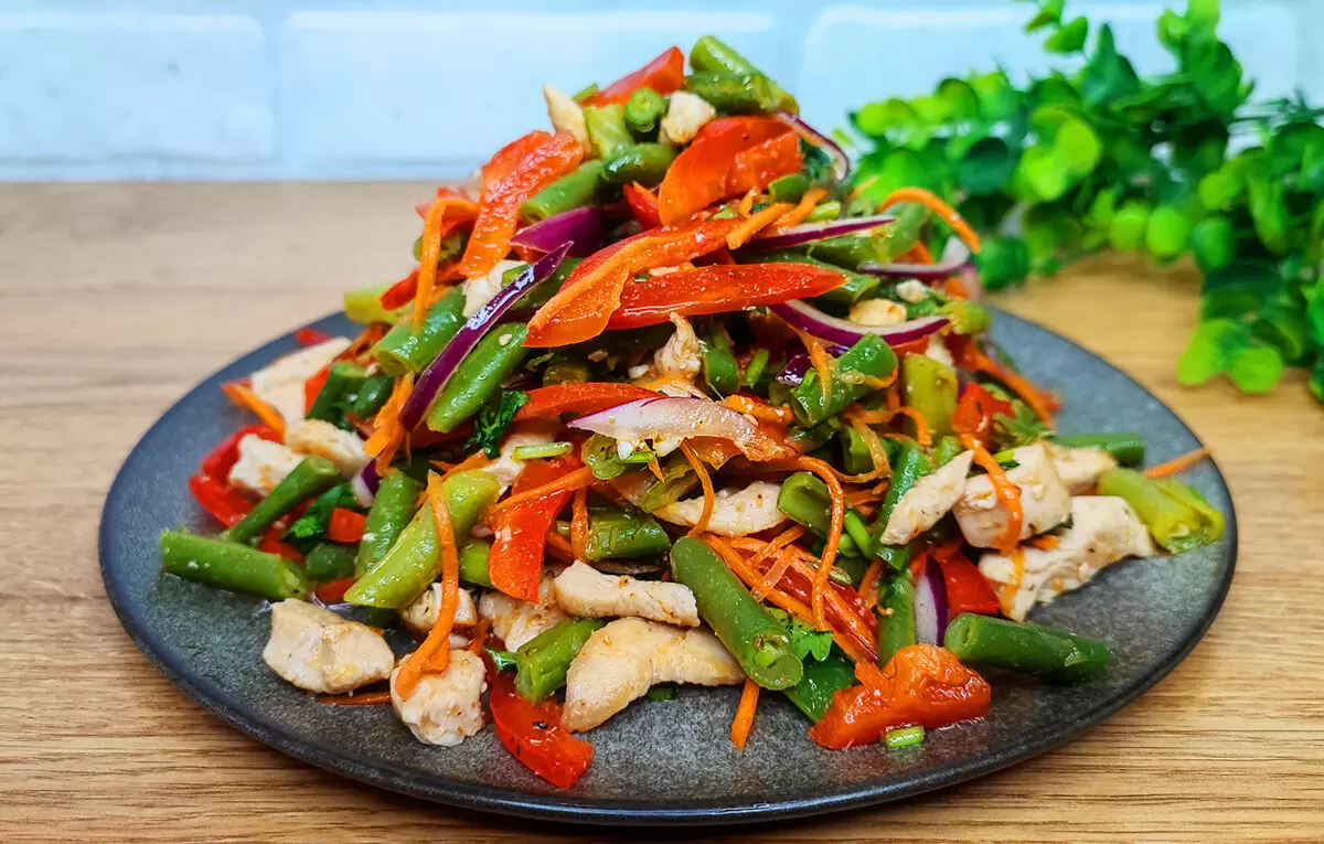 Салат отличается гармоничным сочетанием нежного куриного филе, хрустящих овощей и ароматных специй. Приготовить его сможет даже новичок на кухне, ведь весь процесс не требует особых навыков. За счет простоты рецепта, результат выглядит так, будто на его создание было потрачено гораздо больше времени!