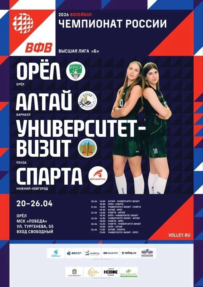Женский волейбольный клуб «Орел» сыграет с коллективами «Университет-Визит» (г. Пенза), «Спарта» (г. Нижний Новгород), «Алтай» (г. Барнаул).