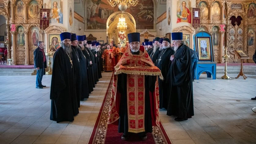 Священнослужителей удостоили права служения Божественной литургии с отверстыми Царскими вратами по "Отче наш…", права служения Божественной Литургии с отверстыми царскими вратами по "Иже Херувимы... ", права ношения наперсного креста с украшениями, права ношения палицы и сана протодиакона