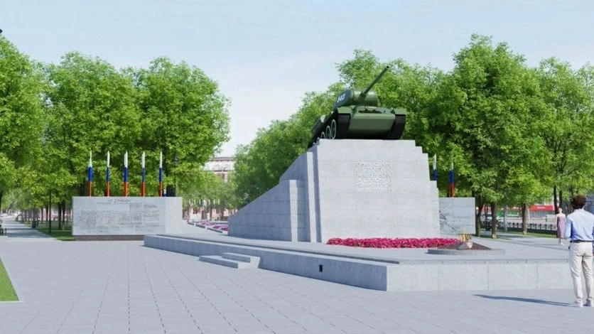 Специалисты исправят крен фундамента под стелой с картой справа от танка, обновят стелу с выдержкой из приказа Верховного главнокомандующего с благодарностью за освобождение Орла и Белгорода, памятный камень у братской могилы, постамент танка и сам Т-34