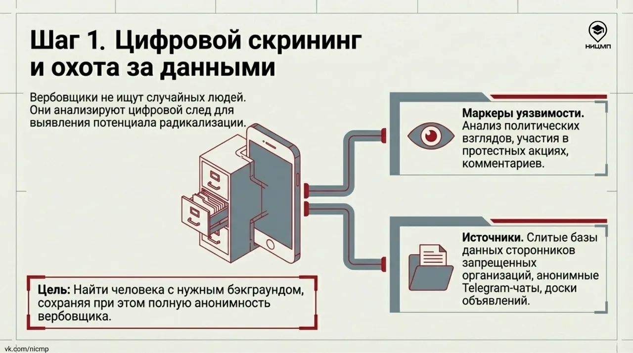 Вербовка все чаще происходит в цифровой среде. Социальные сети, мессенджеры и анонимные онлайн-площадки используются для поиска потенциальных кандидатов и установления контакта.