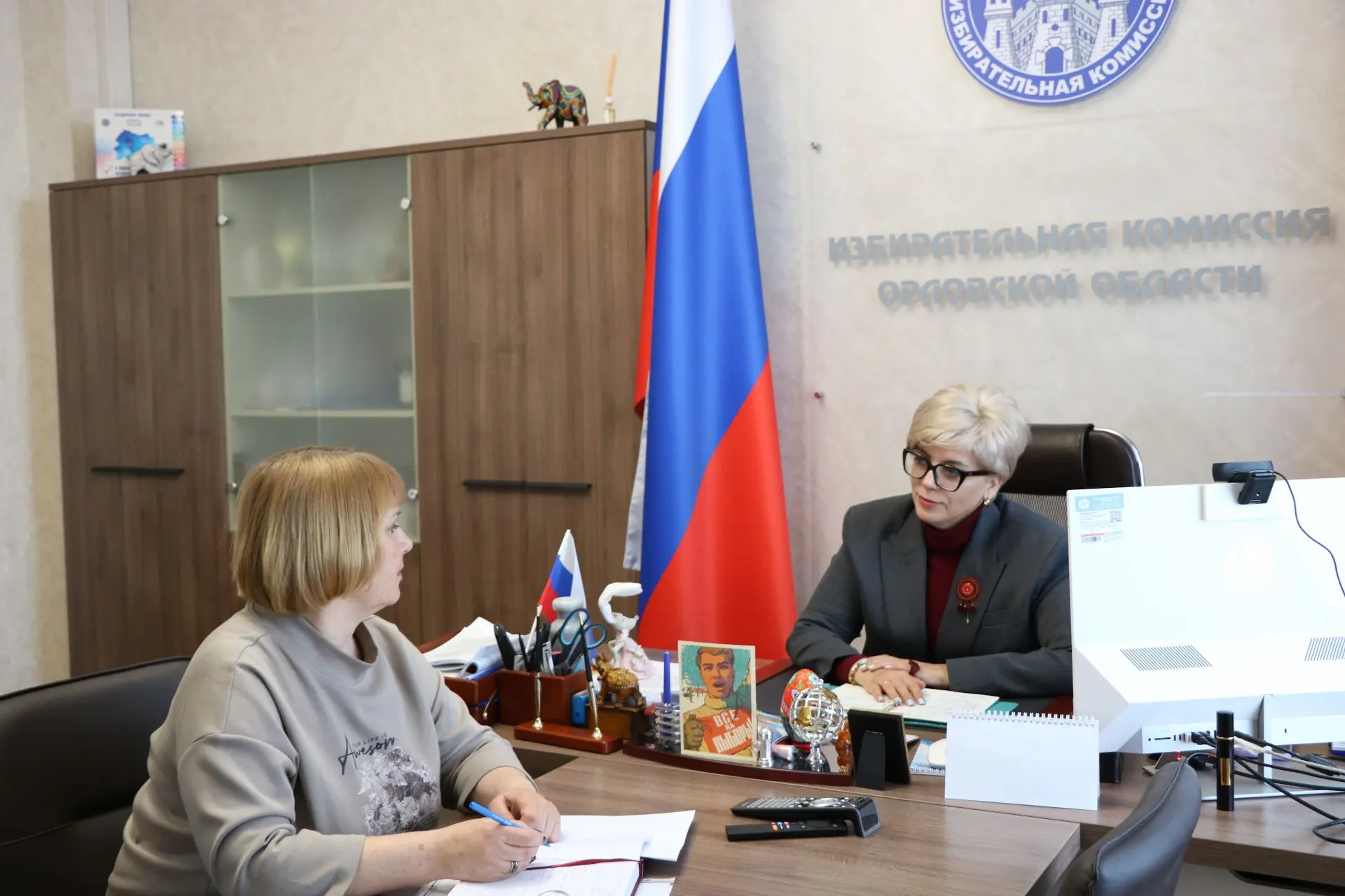 Председатель избирательной комиссии Орловской области Лилия Пиняева провела рабочую встречу с председателем территориальной избирательной комиссии Свердловского района Орловской области Натальей Сидоровой.