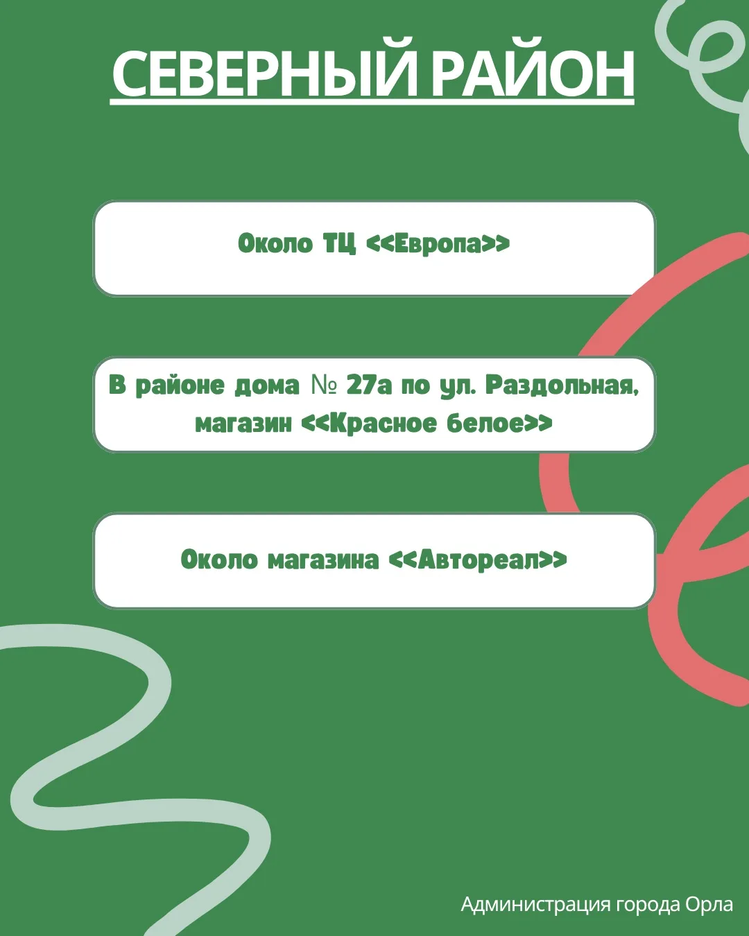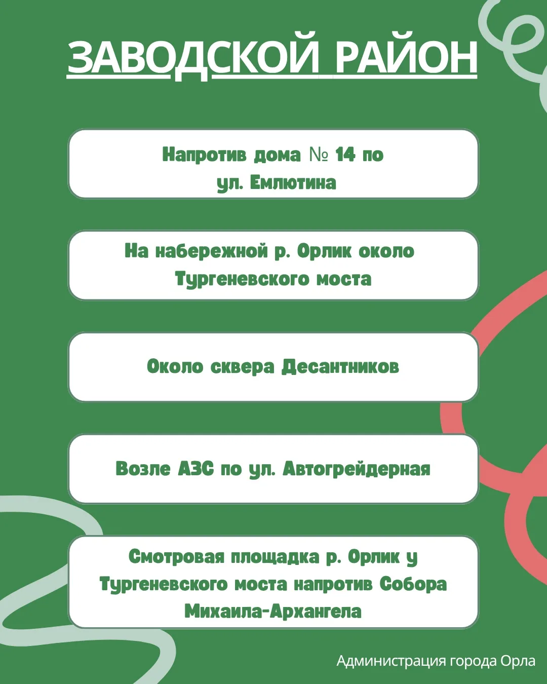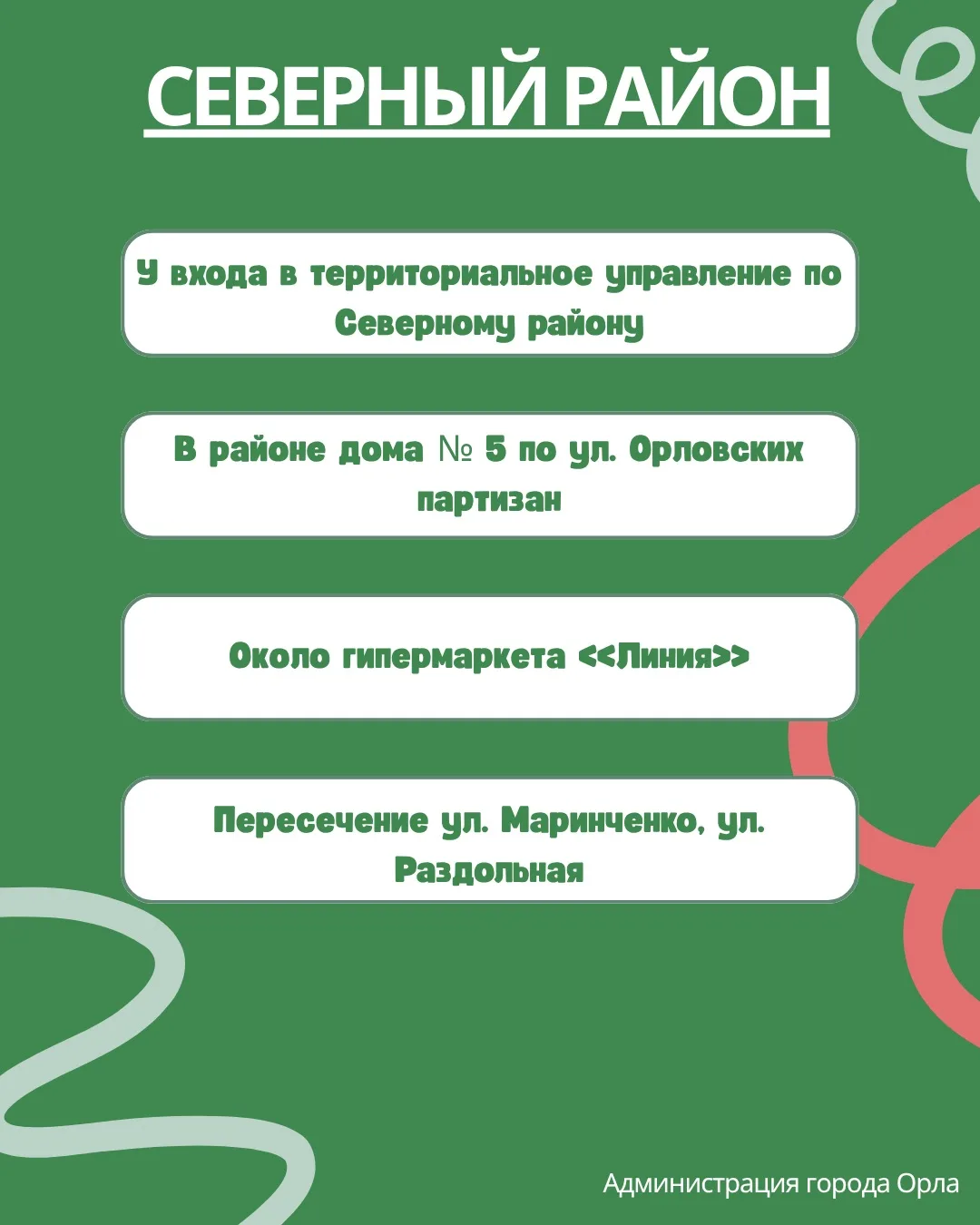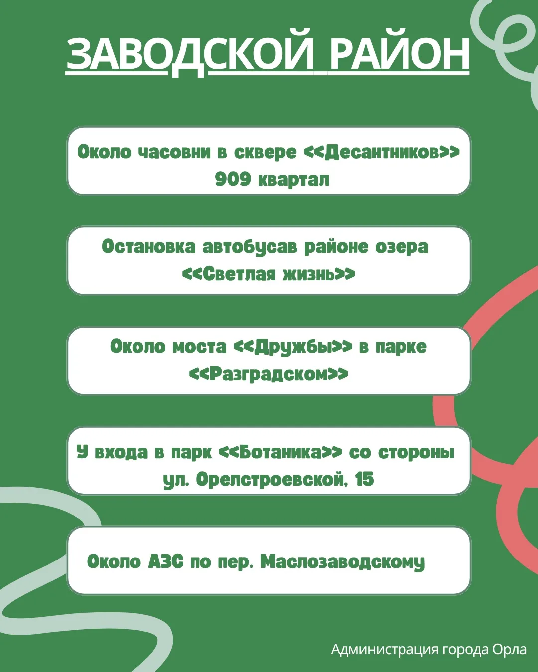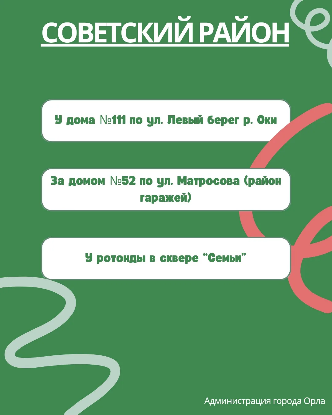 Отдельно приглашаю всех, кто готов присоединиться к уборке общественных территорий. В карточках указаны точки сбора экоотрядов — выбирайте ближайшую и приходите в эту субботу, 18 апреля.