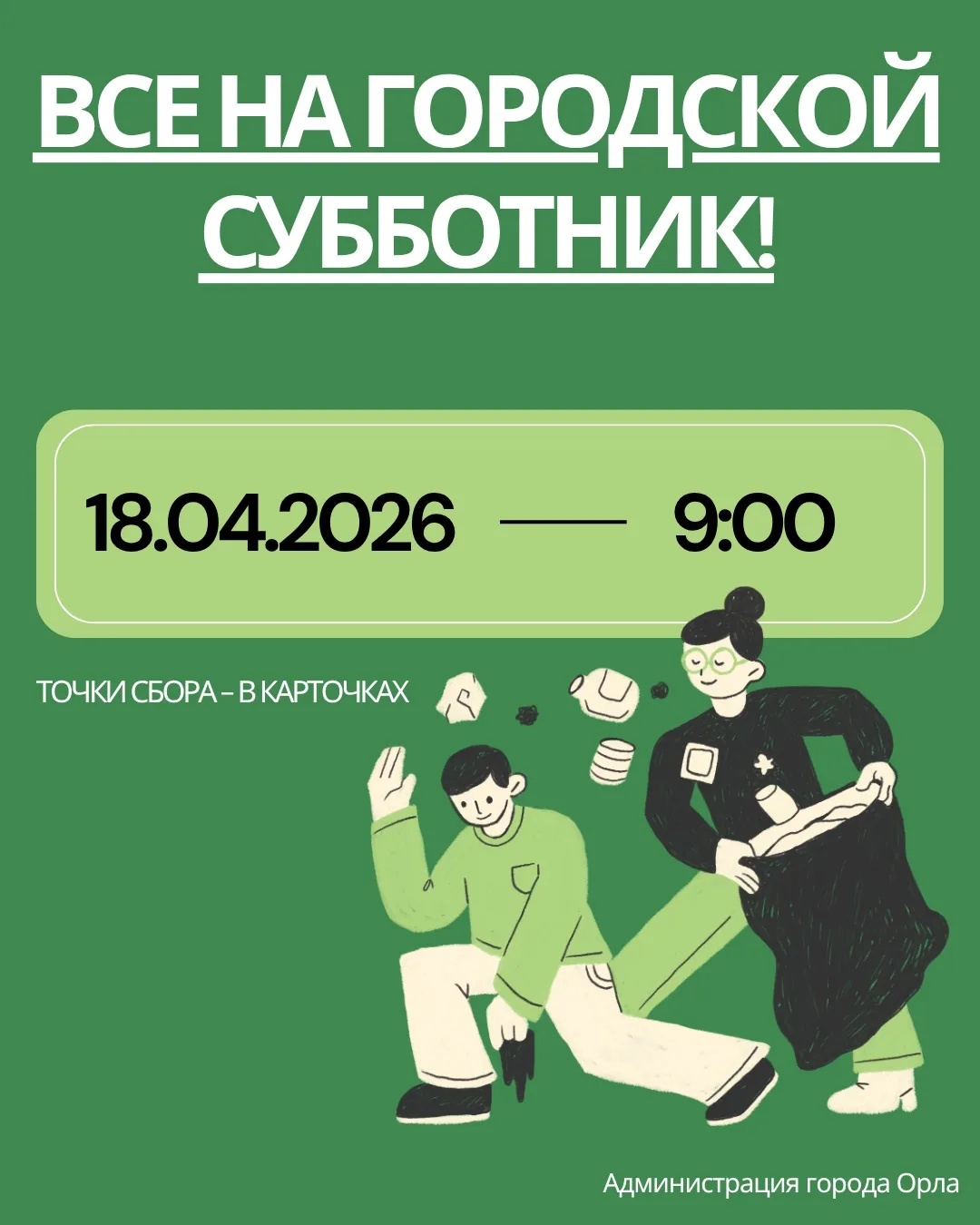 Давайте вместе сделаем наш город чище и красивее! До встречи в субботу!