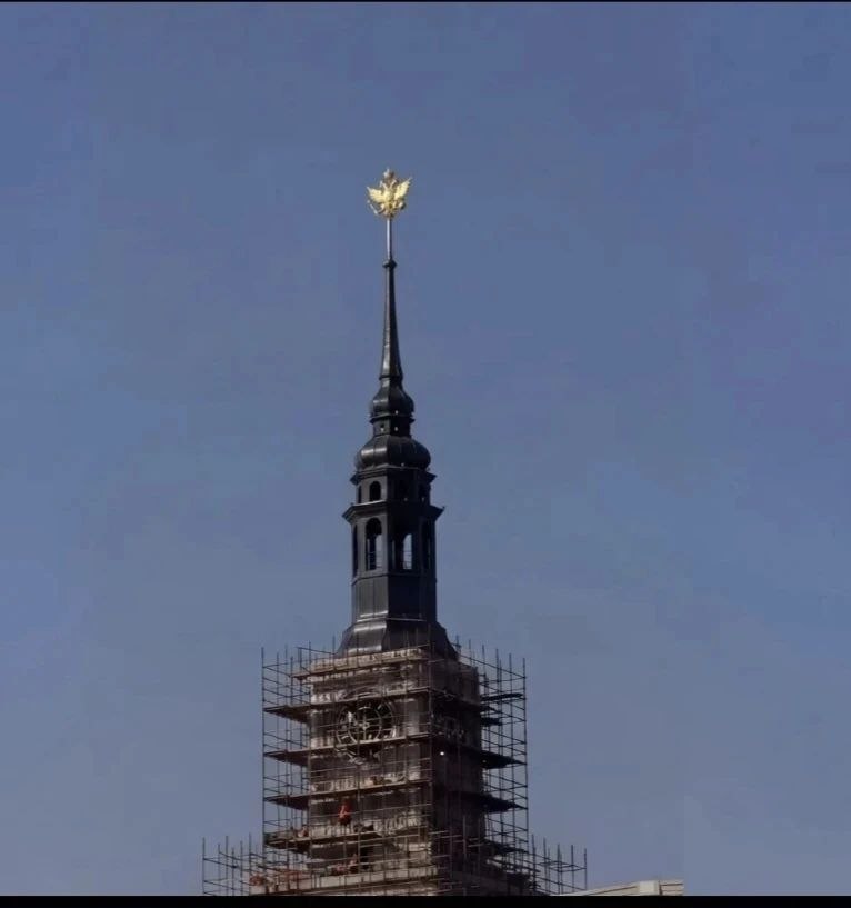 На фото вариант, как мог бы выглядеть двуглавый орёл на шпиле.