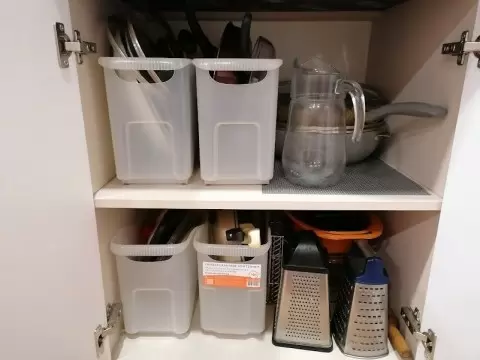 Контейнеры — отличное решение для систематизации хранения. Их можно подписать, указав, что находится внутри: «Швейные принадлежности», «Аптечка» и так далее. Это не только облегчит поиск нужных вещей, но и добавит эстетичный вид вашему пространству. Однако важно избегать упаковки повседневных предметов в контейнеры; лучше продумать, что нужно хранить, и заранее подготовить систему.