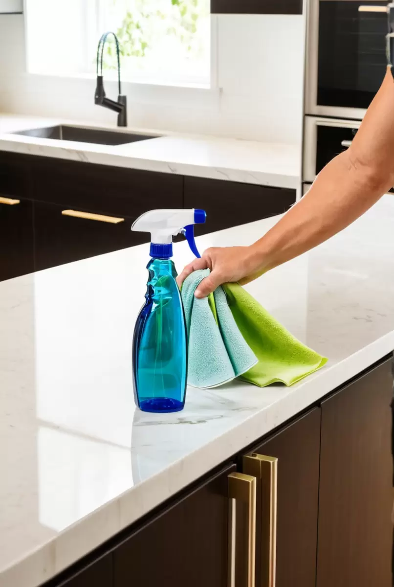Столешницы могут быть выполнены из разных материалов, и от этого зависит метод очистки. Для акриловых и натуральных камней подойдут pH-нейтральные обезжириватели, которые наносятся мягкой губкой. В случае керамогранита можно использовать более мощные средства, так как этот материал устойчив к химии.